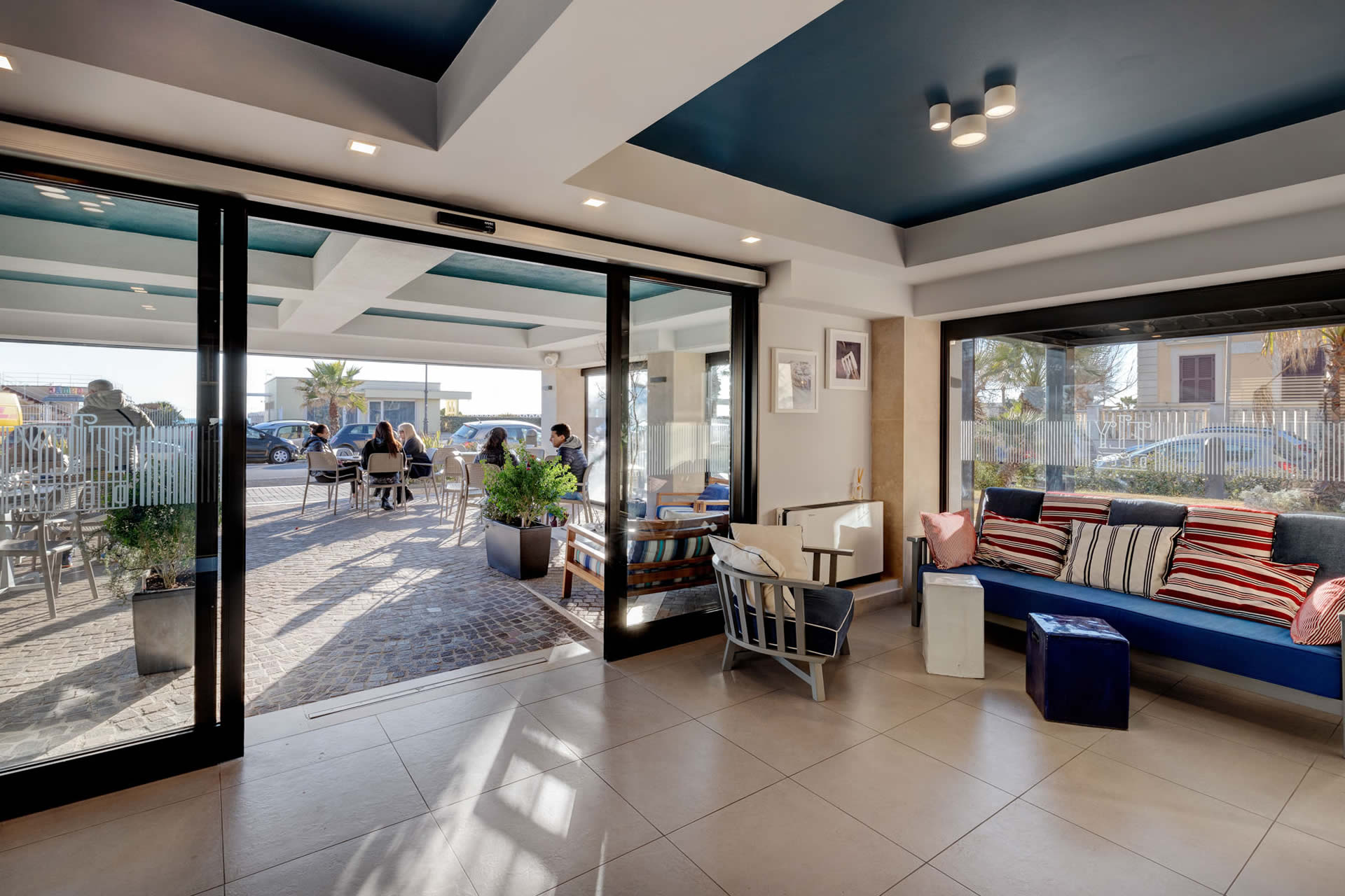 Riservata esclusivamente agli ospiti dell'hotel, la terrazza panoramica all'ultimo piano regala un'esperienza unica con vista sul mare.